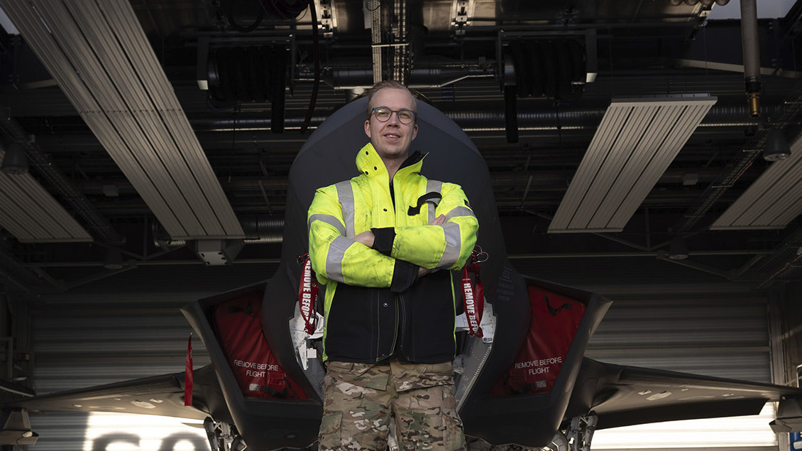 Passionen for fly har fulgt Marcel, siden han gik i børnehave. Særligt kampfly, med deres gennemtrængende sus og brøl over himlen, vækkede nysgerrigheden i den lille dreng. I dag er han stolt flymekaniker i Forsvaret og udfører den helt afgørende klargøring af de nye F-35, når fly og piloter skal afsted på opgave.
